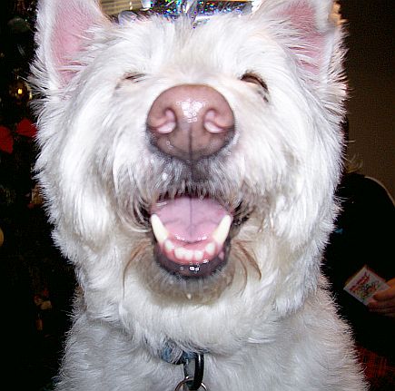 | Dais shows how happy she is after all that sugar, then moves on to open her presents, where she ends up with a bow in her hair! |