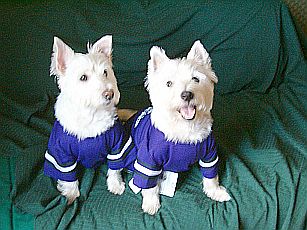 WET WESTIES -- In an attempt to stay dry when they just can't wait to go walking, Dais and Coda try some custom raincoats. | |||||||||||||||||||||||||||||||||||||